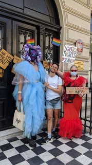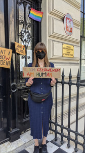 On the 12th July, the homophobic Polish president got re-elected for another term. On the 18th, we protested outside the Polish Embassy in London yet again. We organised a 'photo booth' outside the doors of the Embassy with a theme of 'I am Human' - following the remarks of the Polish president referring to LGBT+ people as ideology ahead of the election! We wanted to keep the demo positive, but still send a clear message.